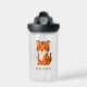 Cute cartoon illustration of a tiger cub sitting. Customizable text.