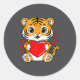 Cute Tiger Holding Heart Kawaii Valentines Day Men Classic Round Sticker