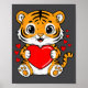 Cute Tiger Holding Heart Kawaii Valentines Day Men Poster