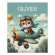 Adventure roars to life! This glossy poster features a bold & adorable tiger cub piloting a charming aeroplane through fluffy clouds. Personalise with a name for a vibrant & inspiring decoration that ignites dreams and brightens any room. High-quality printing ensures vivid colours and a captivating shine.