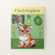 Cute tiger photo name green yellow kids jigsaw puzzle