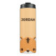 This design features cute tiger cartoon illustration with personalised name in brown modern sans serif font style on pastel orange background.