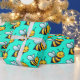 Cute Cartoon yellow bees pattern on bright turquoise green background Wrapping Paper