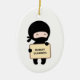 Cute Tiny Ninja Holding Sign, Custom Name Ceramic Tree Decoration