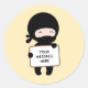 Cute Tiny Ninja Holding Sign on Yellow Custom Text Classic Round Sticker