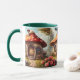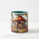 Charming toadstool fairy house with editable name. Cute fairy dwelling with red and white mushroom roof and little windows. Roses around the door. Teapot also available.