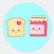 A whimsical, quirky and kawaii cartoon of a slice of toast and strawberry jam. Jam is applied in a heart shape on the bread. The sweet idea behind this cartoon is to spread love like jam. A cute food doodle to put a smile on the recipient's face.