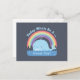 A doodle of a cute whale sprouting air from its blowhole which forms a beautiful rainbow across the ocean. The good vibes pun caption reads "Today Whale Be A Great Day!" Send out positivity with this colourful and cheerful greeting postcard.