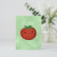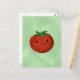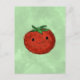 Cute cartoon style red tomato on light green background. Custom postcards.