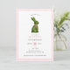Cute and preppy Hand painted watercolor topiary bunny rabbit with pink bow birthday invitation for girls with pink and white gingham border.