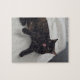 Cute tortoise shell cat laying on bed, licking her nose, is printed on jigsaw puzzles. Thank you for shopping at CherylsArtPhotos on Zazzle.