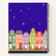 Cute Town Black Cat Cartoon Houses Spiral Notebook