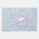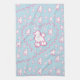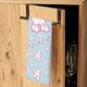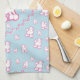 This kitchen towel pattern design features cute Toy Poodle dogs that have been groomed and has heart-shaped paw prints. Pink and white on a light blue background. Great for dog lovers.