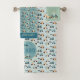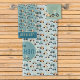 This gorgeous bath tower set is absolutely stunning! It features a pattern of cute little tractors on blue background, perfect for kids who love tractors or farmers' boys. It comes with the possibility to add a name and Initial.