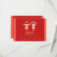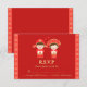A matching RSVP card to cute traditional Chinese wedding invitation. Design has a cute cartoon of newlyweds, the groom and bride in bright red and gold auspicious costume. The border is a pattern made using the Chinese characters. It means double happiness which is used for marital happiness. Personalise with your RSVP message.