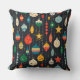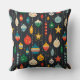 Watercolor pattern of ornaments in navy blue, orange, green and red for Christmas party.