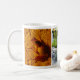 Photographs of cute Tree Frogs and a Pond, displayed on a mug. -- Photograph is copyrighted by the photographer, Christina Spiegeland.