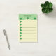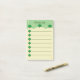 Cute check list notes featuring green and brown trees. The top of the notes have three little trees on top of three hills on a green background with yellow flowers dotted around. The words check list is placed above the trees. This is a template so you can use it as it is or use the text box to replace with your own words. The bottom two thirds of the notes have a cream background with green lines across the page to write your notes. A small green and brown tree is placed at the beginning of each line as bullet points.
