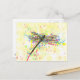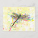 Cute trendy girly watercolor splatters dragonfly postcard