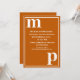 Simple minimalist typography design in a trendy cute text pairing of fonts in bold lower case for the monogram letter text templates and upper case font templates for the details that are easy for you to personalise in the popular wedding colour of burnt orange and white. Just change the letters and details to your own right on the product page. All elements are fully customisable.