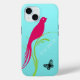 Cute Trendy Pink Swallow Bird Butterfly on Aqua Case-Mate iPhone Case