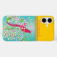 Cute Trendy Pink Swallow Bird Circle Burst Aqua Case-Mate iPhone Case