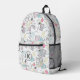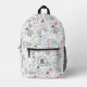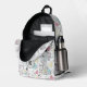Cute Trendy Teacher Modern Colourful School Pattern Printed Backpack. Change to your Initial! Imagine a charming, simple sketched pattern featuring a delightful classroom and back-to-school motif. This pattern is the epitome of nostalgia, perfect for teachers, kids gearing up for the school year, college students, and anyone who appreciates the classic charm of school supplies. With every glance, it evokes memories of backpacks filled with books, sharpened pencils, and the endless possibilities of the classroom. This back to school pattern features books, clocks, calculators, notebooks, rulers, apples, glasses, protractors, stars and more. Mostly black and white with pops of colour. Great for back to school for your children, or for a teacher appreciation or holiday gift.