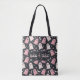Happy pink and white ghosts float on a black background on this stars and moon filled patterned, personalizable trick or treat Halloween candy bag.