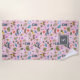 This fun, colorful beach towel features a pattern of 3 different dogs, balancing pineapples and balls, chasing a lizard, wearing bandanas, jumping over balls, and just looking super cute! The tropical pattern also features flowers, palm trees, palm branches, flip flops, and leaves. Text template included for personalization (monogram)! The background color can be customized to any color you'd like! Artwork exclusively created by Mabel and Moe (for Orabella Prints).