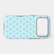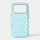 A cute teal blue starfish pattern iPhone case. Design features tiny watercolor teal blue starfish on a light teal background.