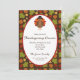 This festive Thanksgiving invitation features a cute turkey with a background of seasonal leaves