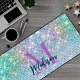Cute Turquoise unicorn faux glitter monogram Desk mat. Add a touch of glitter and glam to your home office or dorm with this elegant desk mat. To make it extra special, it is also monogrammed and personalised with name or initials. click the "customise further" link and use the design tool to modify the design if you like.