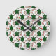 Cute Turtle and Floral Seamless Pattern Round Clock