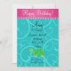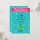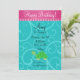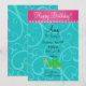Fancy green turtle invitation with turquoise/teal/aqua swirls pattern, ppink scallop hearts border for a turtle themed birthday party