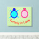 This awesome canvas print features a cute image of a blue turtle and a pink turtle side by side. The cute couple have eyes only for eachother and cute little tails. The shell of the turtle is made of two shades of pink for the female and blue for the male. These guys are turtally in love and would make a great gift for couples.