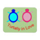 This awesome magnet features a cute image of a blue turtle and a pink turtle side by side. The cute couple have eyes only for eachother and cute little tails. The shell of the turtle is made of two shades of pink for the female and blue for the male. These guys are turtally in love and would make a great gift for couples.
