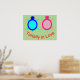 This poster features a cute image of a blue turtle and a pink turtle side by side. The cute couple have eyes only for eachother and cute little tails. The shell of the turtle is made of two shades of pink for the female and blue for the male. These guys are turtally in love and would make a great gift for couples.