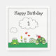 Cute birthday party paper napkin with turtle, ladybug, and frog, flowers and hearts. From the Snookums & Bug Party Collection.