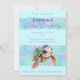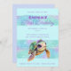 Cute Turtle Summer Beach Aqua 1st Birthday Invitation