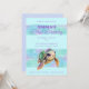 Celebrate your little one's first birthday with these beautiful iridescent aqua invites featuring a cute watercolour turtle with floral and glittery elements.