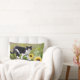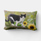 Cute tuxedo cat on a tree branch with sunflowers lumbar cushion