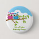 Cute Twins Owls on Branch Girl Boy Birthday Button
