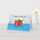 The Two Little Sheep eagerly waiting to open their Christmas present. My two cartoon sheep have been given a gift in a red box with a yellow ribbon and bow. It has been placed on a blue tablecloth with yellow stars and there are snowflakes in the background. Easily personalise this card using the template text. Card currently says 'Happy Christmas' on the front and 'Wishing you a Very Merry Christmas' inside.