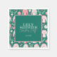 The Ugly Sweater Christmas Party Napkin has a bold yet stylish vibe, blending a retro and botanical theme with a pastel pink and forest green colour scheme. The background is a rich, deep forest green, which creates a striking contrast for the lighter, more playful elements on top.