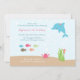 This 5x7 girl's birthday party invite has an adorable Under the Sea theme. On the right, there is a cute dolphin swimming at the top with a seahorse swimming around some seaweed and a crab at the bottom. On the left, there is a school of fish swimming towards the bottom. At the top left, you can easily customise the birthday party information. On the back, there is a squid swimming at the top. At the bottom, there is a clam with a pearl in it. There is a soft blue background with lots of white bubbles. Some design elements by STOCKBERRY STUDIO