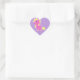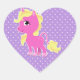 Sweet girl's girly heart shaped stickers, with a pink and yellow cartoon unicorn on a purple and white polka dot background. Customise to add your own text. Matching Unicorn birthday products are available.