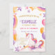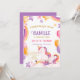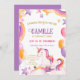 This cute and girly kids birthday invitation design features a magical unicorn, with a rainbow, balloons and stars, and can be personalised with all the information you need for your child's party in a whimsical typography. The perfect unicorn invitations for your little one's birthday, customisable for any age!