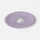 Purple Birthday Paper Plates with a cute Unicorn and polka dots in cartoon style. Change the text for a personalised party such as country picnic, housewarming party, retirement, etc.