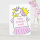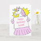 Birthday card with a cute cartoon of a unicorn holding a message board. Message can be easily personalised to add a name of your choice or to change the message completely using the template text. Inside the card says 'Have a Wonderful Birthday!' and has two pink hearts. Unicorn is white with blue eyes and a pale pink mane and hooves. Cute card to personalise and send to any child who loves unicorns!