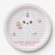 Cute Unicorn Cat - Pink Striped Paper Plate